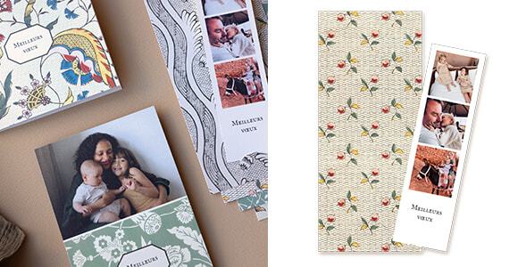 新年のご挨拶カードは折りたたみ式としおりタイプの2種。カードは1.36ユーロから。一枚からオーダー可能だ。