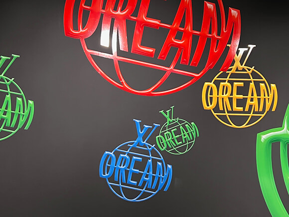 展覧会「LV DREAM」は昨年生誕200周年を祝ったルイ・ヴィトンが1854年に創設したメゾンの、160年間の豊かなアートコラボレーションにフォーカスした内容でまとめられている。9つの部屋で、9つのテーマの旅が待つ構成。会場を彩るのは、スペシャルオーダーもあれば香水のボトルも、というメゾンの歴史的な商品から最新作まで多岐にわたっている。スタートは「Louis Vuitton : As seen by… 」で、創業者の肖像画を集めた部屋。クラシックな肖像画ではなく、メゾンが依頼したコンテンポラリーアーティストたちのイマジネーションによるポートレートで、アレックス・カッツとミスター・カートゥーンによる作品は初公開だそうだ。「The World of Vuitton according to Rei」はコムデギャルソンの川久保玲との2回のコラボレーションによるモノグラムのバッグを展示する。