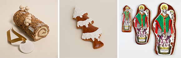 左: シグネチャー・ビュッシュ(6〜8名用)50ユーロ 右: クッキーは1枚2.5ユーロ。12月17〜24日の販売。