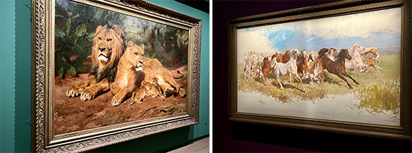 左: 野獣の作品はテーマとしてひと部屋捧げられている。 右: 未完で終わった『火事から逃げる野生の馬』(1899年)。photos:Mariko Omura