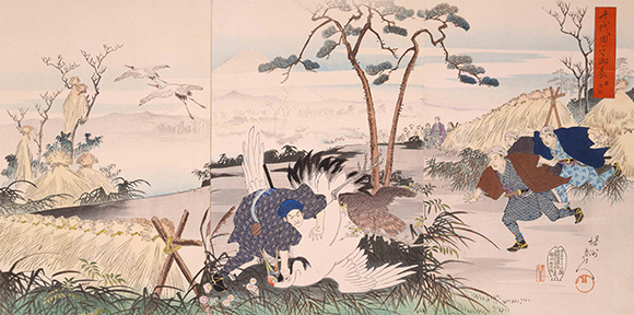 周延楊洲が描いた江戸城外の鶴狩り。1897年。collection du Edo-Tokyo Museum
