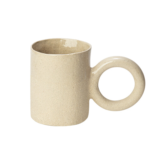 2020 年より独学で陶芸を始め、若きパリジェンヌらしいモダンな作風でじわじわと注目を集めている陶芸家、レア・バルダサリ。大きくて丸いイヤーハンドルが飛び出ているようなマグカップは、彼女のアイコニックなデザインのひとつ。白土の釉薬を用いた洗練された佇まいながら、ざらりとした質感で、手仕事ならではの温もりが感じられる。Φ4.5×H6.5cm 29ユーロ