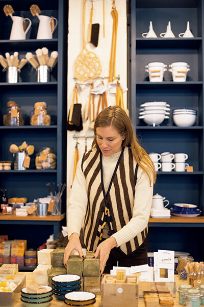 「使い捨てをせず、長く使える自然素材の良品を大切に使うこと。そんなライフスタイルを考えるきっかけになってくれたら」と、2021年にランドラインをオープン。伝統技術や品質が認められたフランスの「無形文化財企業」を中心に、キッチン用品からコスメ、文房具、ファッションまで、アイテムも価格帯も幅広く揃える。暮らしを豊かにしてくれる美しさもセレクトの基準だ。「エシカルな生活は決して難しくて高価なものではない」と語る。