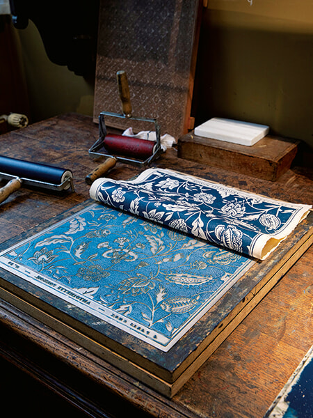 ヴァンサン・ファレリーとジャン=バティスト・マルタンは、歴史建造物を修復していた時に、18世紀の壁紙、ドミノペーパーを発見した。その美しさに魅せられ、当時の手法のままに蘇らせたのがこのメゾン。彼らが発信する18世紀の美意識をたたえたデザインはたちまち評判を呼び、モチーフを印刷した文具や布地、陶器へとラインナップが広がった。メゾン発祥のアイテムであるドミノペーパーは、変わることなくバスティーユのショップに隣接するアトリエで一枚一枚制作されている。