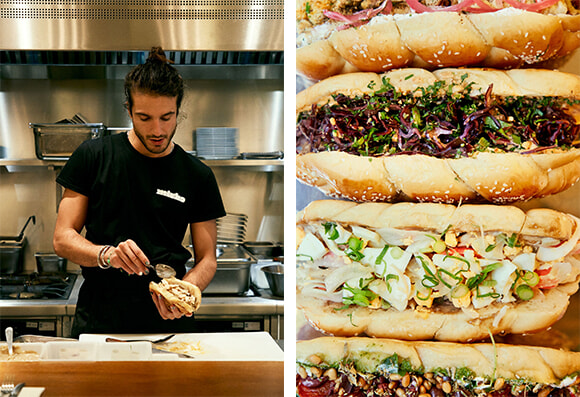 なおサンドイッチ用のハラーパンは9区と10区に店を構え、行列のできるパン屋として有名な「Mamiche(マミッシュ)」による特製である。とろ火で煮込んだビーフを挟んだ「Stew」(15.5ユーロ)、ローストチキンとゆで卵を挟んだ「Roast」(15ユーロ)、きのこのオムレツを挟んだ「Havita」(12ユーロ)のセバッグによる3種のサンドイッチがメニューに並び、毎週ゲストによる味がプラスされる。どのサンドイッチも野菜がたっぷりで、フィリングはパンからはみ出さんばかりのおデブさんだ。1本のサンドイッチはふたつに分けてサービスされるので、もしふたりで行くのなら2種を頼んでシェアするのがいい。