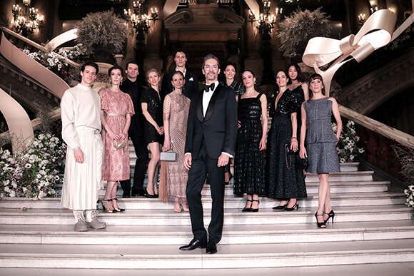 公演後、新芸術監督ジョゼ・マルティネスを囲んだエトワールたち。女性は彼の左ふたり(レオノール・ボラックとミリアム・ウルド=ブラム)以外、全員がシャネルでエレガントにポーズ。photo:François Goizé