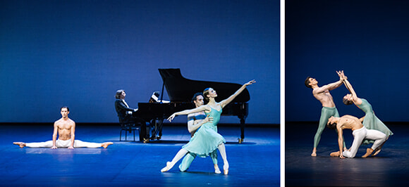 次の『le Chant du compagnon errant(さすらう若者の歌)』は、エトワールのジェルマン・ルーヴェとユーゴ・マルシャンが配役された。パトリック・デュポンがこれを友人と踊ったように、バレエ学校時代からの仲良しとして知られるユーゴとジェルマンという組み合わせが、ガラ公演に感動をプラスし、観客の心を掴んだ。『Vaslaw』はバッハの「プレリュードとフーガ」がステージ上でピアノ演奏され、こちらの作品はパリトン歌手が歌うギュスターヴ・マーラーの「さすらう若人の歌」。ダンスだけでなく音楽も楽しめる贅沢な2演目だった。
