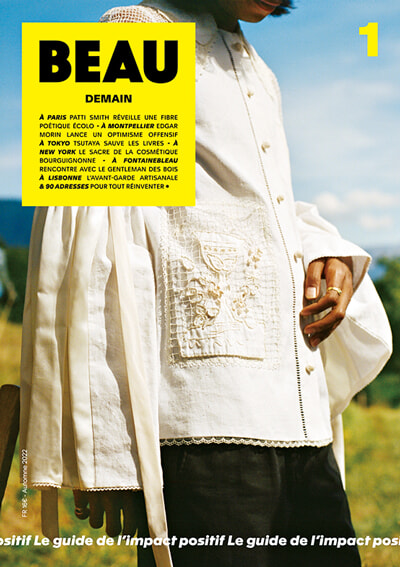 編集長のシャルロット・ルドーは、ペンの力で世の中を変えたい、とジャーナリストになった。モード雑誌の編集長を10年間務めたが、「重要な問題を軽やかに語る」女性誌のあり方が変わってしまったと感じて辞職。パンデミックによる最初のロックダウンの時、彼女はグランシェフたちを動員し、病院のスタッフに食事を提供する運動を起こす。この企画の成功で、「未来のために行動する準備はみんなできている。人と人を繋ぐ誰かが必要なだけ」と実感した。そこから社会的意義と魅力的なビジュアルを併せ持ち、「クールな意識」を価値観とする雑誌の企画が生まれた。「BEAU」の表紙には、”ポジティブインパクトのガイド”という言葉がある。そこから浮かび上がるのは、「明日のためにどんな行動を?」「どんなチョイスが?」と自問するパリジャンの姿だ。創刊号発売から3カ月、編集部には、定期購読や寄付で雑誌を支えたい、という読者の声が寄せられている。