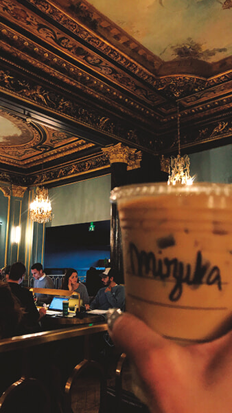シャンデリア、天井画、鏡。宮殿のようなスターバックス。