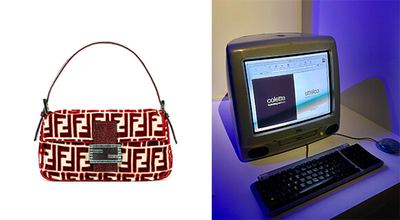 左: フェンディのバゲットバッグ。1997〜98年秋冬コレクションより。 右: 開店時からコレットには公式サイトが存在した。photos:(左)©︎ Courtesy of Fendi、(右)Mariko Omura