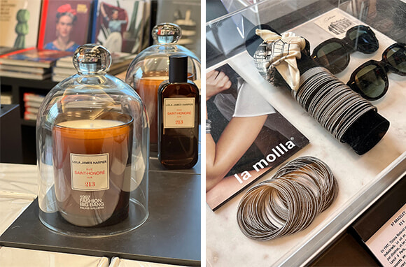 ガリエラ美術館のブティックでは展覧会の開催中、ラ・モラのブレスレットを販売している。またコレットのオープニングの招待状のビジュアルを用いたノートやマグネットも。さらに、コレットのブティックに流れていたイチジクの香りを再現したローラ ジェームス ハーパーのパフュームキャンドルも400個の限定販売が行われている。サラが語る。「2017年12月のコレット閉店から数カ月後に、ブランドからコンタクトがあって香りの使用について許可を与えたんです。ブティックのこのイチジクの香りが嗅げないことを惜しむ声も多くあったので……」