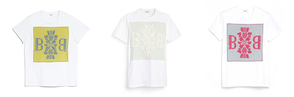 その中で誰もが1着は欲しいと夢見るのが、カシミア・ロゴのパッチをつけたTシャツだ。イニシャルBふたつを向かい合わせにして、中央に創業地スコットランドの国花であるアザミの花をあしらったグラフィカルなロゴ。それまでTシャツは存在しなかったバリーで、カシミア素材の3DのロゴのパッチをつけたコットンTシャツを彼は発表し、定番アイテムにしたのだ。始まりは白のTシャツにカラフルなパッチという組み合わせだったが、いまではグリーン、ピンク、ブラックのTシャツも。欲しくなるコンビネーションが無限に増えそうで、うれしいやら恐ろしいやら……。