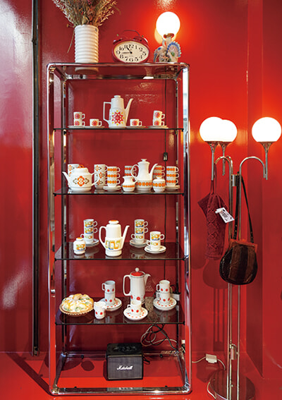 クララのポップな世界観とマッチする、北欧で買い付けたアンティークのティーセットも販売中。55ユーロ〜