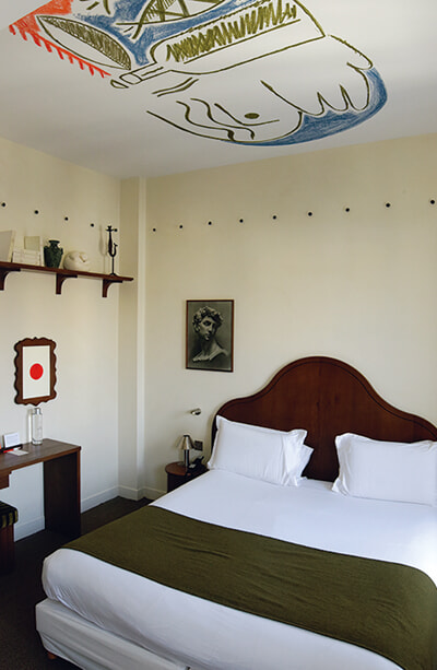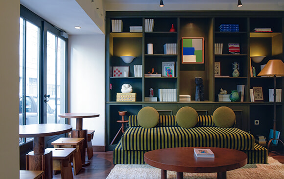 ホテル内のインテリアを手がけたのは、リゼ&ユーゴという若き建築家デュオ。窓際の丸テーブルや椅子は画家のアトリエをイメージしてデザインしたもの。