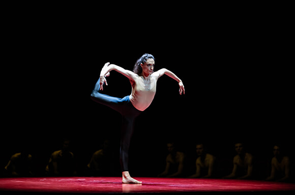 「この作品、ひどく疲れるのよ。だから耐久性についての仕事をすることがとても大切だと思って、リハーサルの最初から、通しで稽古をしたのよ。初めて通しで踊った時は恐ろしいものだった。私の身体が動きに慣れたところで、力の入れどころがどこも同じにならないようにして疲労を軽減し、呼吸する瞬間を観客席には見えないように見つけて……ほかの部分より少しだけ身体を休ませてから次を攻撃する!というようにしたのね。私、最後に消耗しきったというようには見せたくなかった。なぜかというと疲れを見せたら、ダンサーに人間的な面をもたらしてしまうから。私が求めたのはスピリチュアルな面や神的というか、規格を超えた次元。エネルギーの低下を見せず、最後まで持続させて、この作品は簡単なのだと観客が思ってしまうように踊りたかったのね。このバレエについてコーチをはじめ、この作品に関わる人たちには“すべてを与え尽くし、命の果てにある、というのが傍目にも最後に見える”といったイメージを持ってるようだけど、私はそれとは同じ考えじゃない」