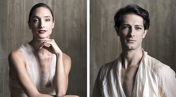 クララ・ムセーニュ(左)とニコラ・ディ・ヴィコ。ふたりはAプロで『ドン・キホーテ』、Bプロで『パリの炎』を踊る。photos:(左)Yumiko Inoue、(右)Julien Benhamou/ OnP