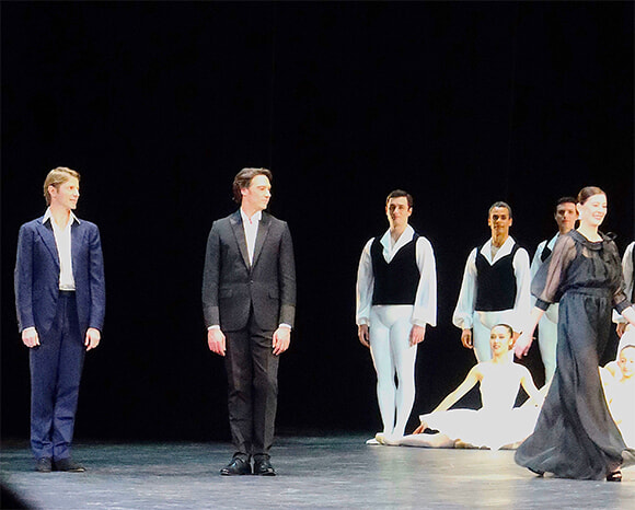 2021年にエレオノーラ・アバニャートのアデュー公演で姿を見せて以来、久々にエルヴェがオペラ座のステージに上がったのは今年2月。往年のエトワールが勢揃いしたガラ「パトリック・デュポンへのオマージュ」のデフィレでのことだ。同世代エトワールのカール・パケット、マリー=アニエス・ジロと共に。photo:Mariko Omura