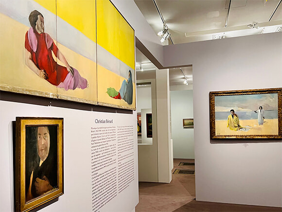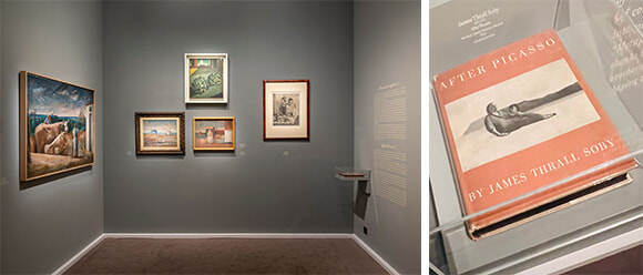 左: ドゥルエ画廊で1926年、エドゥアール・ヴュイヤール、モーリス・ドゥニ、フェリックス・ヴァロタンたちにランソン美術学校で学んだ若いアーティストたちの作品が展示された。ネオ・ロマンティックの始まりがここにある。 右: MoMAが所蔵するクリスチャン・ベラールの『海岸にて(ダブル・セルフポートレート)』(1933年)がカバーを飾る『After Picasso』。photos:(左)Studio Christian Baraja SLB、(右)Mariko Omura