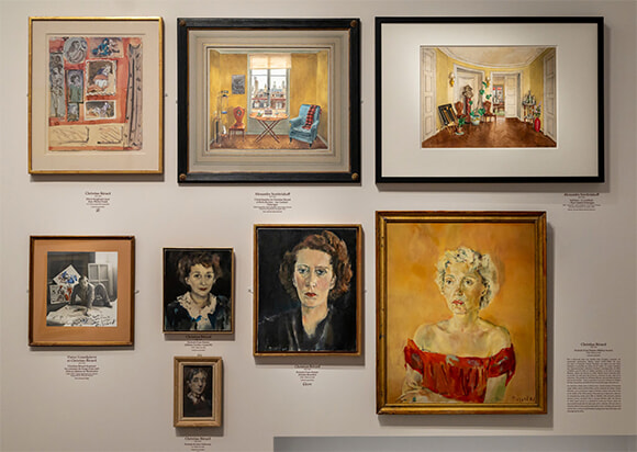 クリスチャン・ベラールによるポートレート、彼のインテリアを描いたアレクサンドル・セレブリャコフによる水彩、南仏での庭園劇『真夏の夜の夢』のコスチュームを準備中のベラールを捉えた写真などを展示。photo:Studio Christian Baraja SLB
