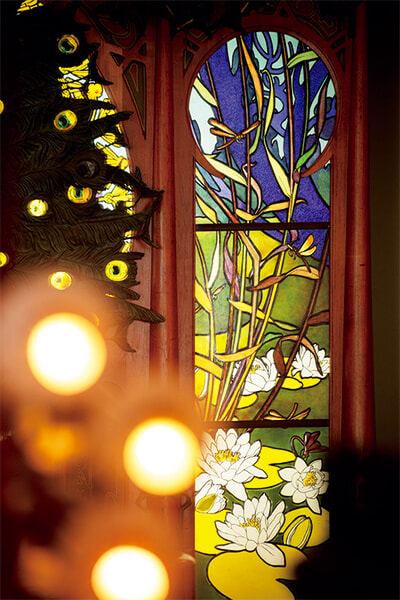 アルフォンス・ミュシャがデザインした宝飾店フーケのブティック。見学者も展示空間内に入れる。ファサードから調度、床や壁の装飾まで、アールヌーヴォーのエスプリに包まれて。