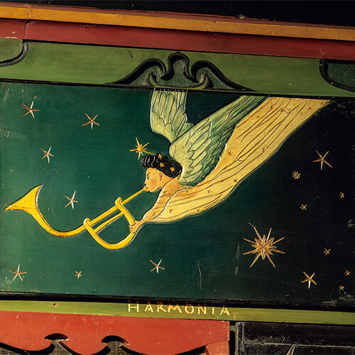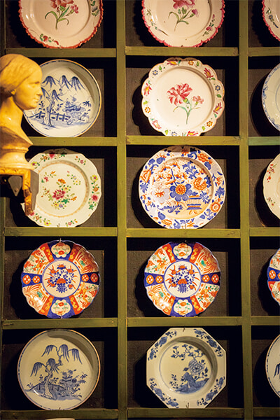 中国のサロンを飾る天使。入館時にガイドアプリをダウンロードして。日本語の解説もある。隣の「食堂」という展示室には、集めたアンティーク家具を解体して作り直したさまざまな調度品を展示。