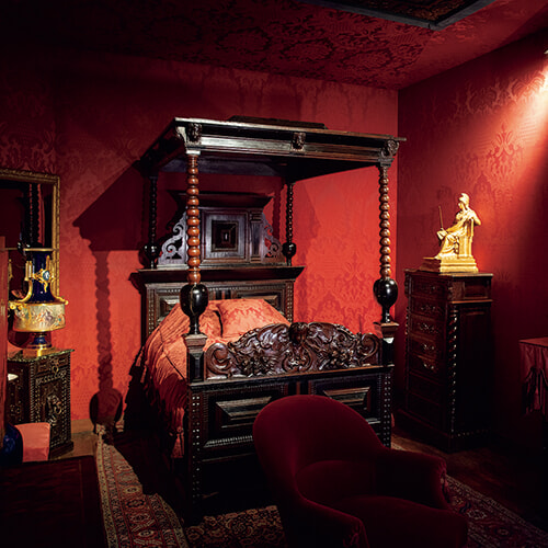 『レ・ミゼラブル』の作者として知られるヴィクトル・ユーゴー。彼が1832年から48年まで暮らしたヴォージュ広場6番地の邸宅が、その人生と暮らしを紹介する記念館として公開されている。ユーゴーは1802年生まれ。政界にも進出するが、ナポレオン3世と対立したことによる迫害を逃れて、パリからジャージー島、さらにガーンジー島へと亡命した。記念館では、亡命前、亡命中、帰国後の3つの期間の彼の暮らしを時系列に沿って紹介しているが、ことに興味深いのは、亡命中の暮らしの展示だ。亡命先にも同行して向かいに住んでいた愛人ジュリエット・ドルエの家のために、ユーゴーが自らデザインし、手作りした内装が再現されている。中国風のモチーフや天使、花などを描き、彫り、彩色した壁。アンティーク家具や木の扉を組み合わせた家具調度。壁に飾られた自作デッサン。髭をたくわえ恰幅がよくて、いかにも文豪といった風貌で知られるユーゴーの、多才で人間的な面が見えてくる。先頃改装を終えたばかりの記念館では、左岸の老舗メゾン・ミュローのサロン・ド・テも誕生し、中庭でゆっくりとスイーツをいただけるのも朗報。ヴォージュ広場の隠れ家で、文豪の人生に思いを馳せて。