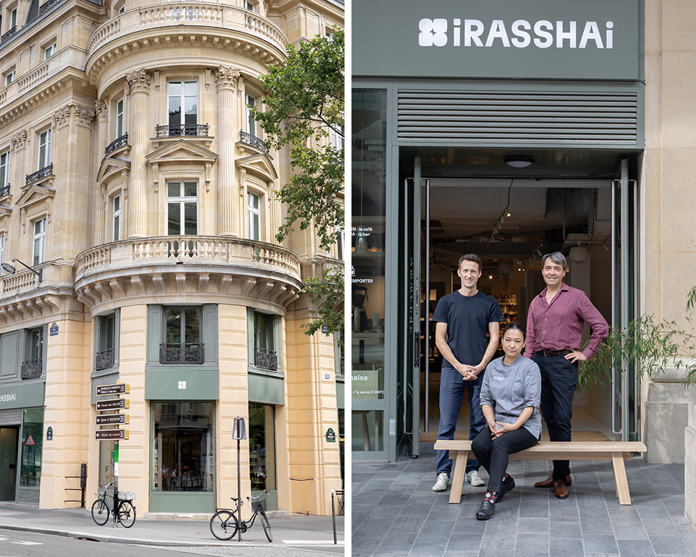 ラ・ブルス・ドゥ・コメルスの向かいに8月9日に静かにオープンした「iRASSHAi(イラッシャイ)」。和食に関するすべてが揃っている800㎡のコンセプトストアは、パリの日本人はもちろん、日本食大好きなパリッ子たちを狂喜させる。オーナーは日本で学業を修め、日本の暮らしを経験しているグザヴィエ・マルシャンとティエリー・マンサンというフランス人2名で、彼らはこれまでなかったカジュアルで現代的な和食関連の提案を提案している。コンテンポラリーなデザインでまとめられた店内は地上階がエピスリー、喫茶店、酒場、食堂、おにぎりやサンド、弁当などのテイクアウトそして地下が居酒屋、料理教室スタジオという構成だ。