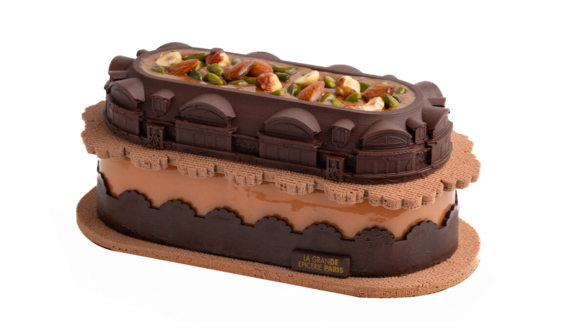 ボン・マルシェの建物にインスパイアされた「世紀のケーキ」。屋根部分とふたつに分かれ、それぞれ驚きのおいしさが詰められている。1名用 7.90ユーロ、6〜8名用 59ユーロ(11月23日から店頭販売)。photo:The Travel Buds
