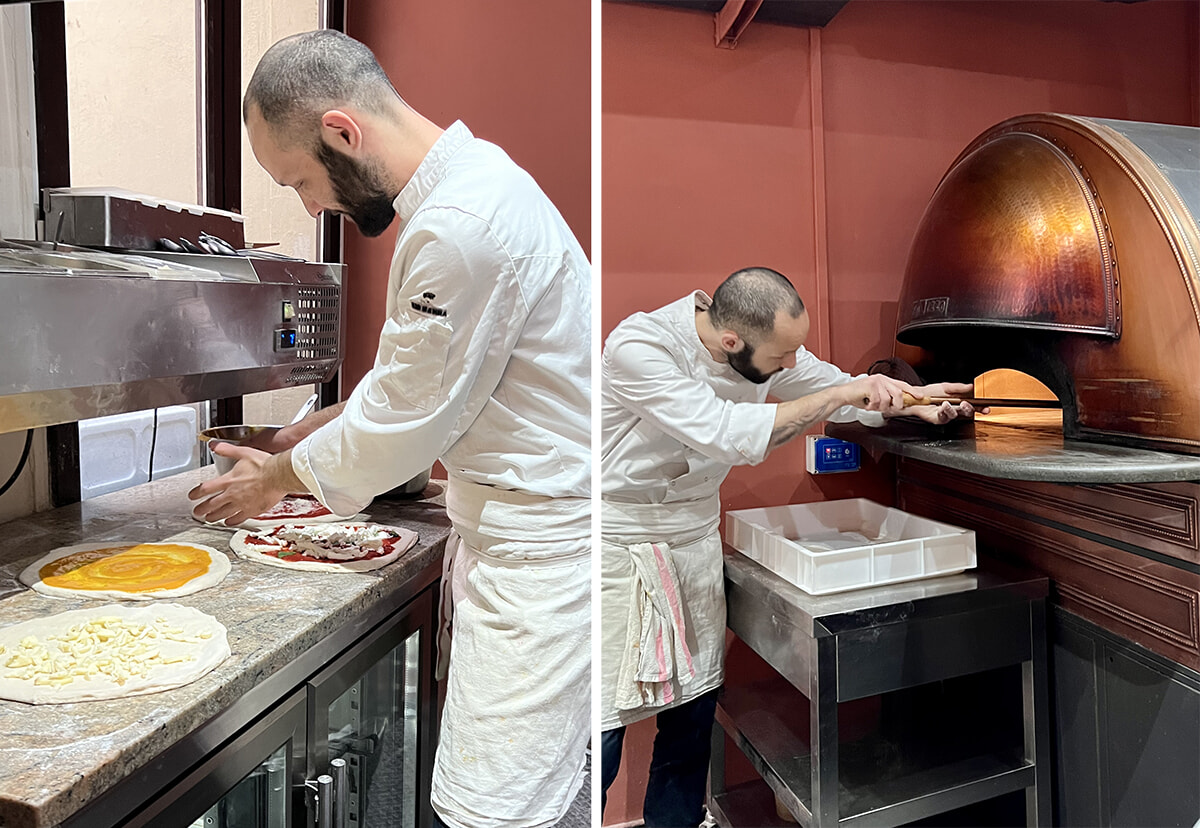 ピッツァイオーロ歴17年のマッテオ・カプリオーリ(右)と経営担当のイドリス。