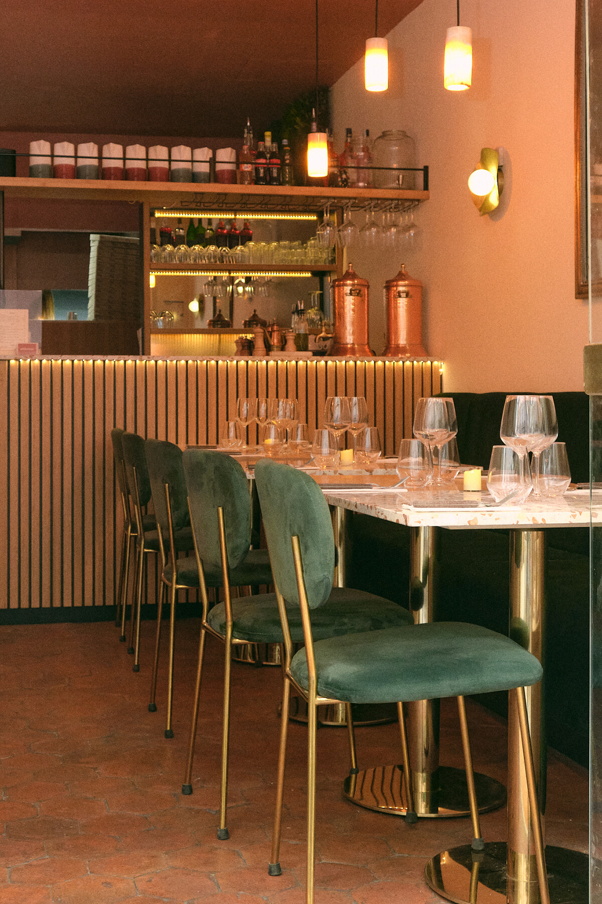 デザートのティラミスはマスカルポーネの代わりにシャンティイ風クリームで軽く仕上げている。ピスタチオクリームのフォカッチャは、ピッツァの後では無理!と敬遠してしまうかもしれないけれど、こちらも軽くて後をひくおいしさだ。また近所でやはりイタリア人が経営するパティスリーのBrigatが手がけるクレーム・パティシエールのブリオッシュもおすすめ。イタリアンワインはグラスで6ユーロから。アンティパスタもいくつかオーダーできるので、アペリティフタイムも楽しめる。パリでピッツァ??と首をかしげる前に、まずはアッドメ体験してみよう!