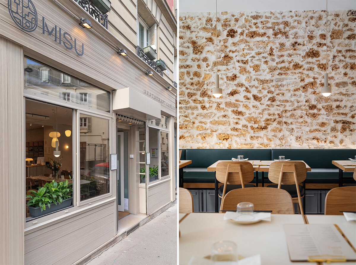ミスウではシンプルでモダンなインテリアの店内で、辛さ加減も甘辛味もほどよく洗練されたおいしい韓国料理が味わえる。鶏の唐揚げや餃子などの前菜、ビビンパ、豆腐チゲ、プルコギといったメインディッシュはどれも昔からおなじみのメニューをミスウでは軽やかに仕上げている。パリのほかの韓国レストランでは見かけないキムチ炒飯もエビかビーフのチョイスがあり、ランチでもディナーでも味わえる。メニューを担当したのはパリ、ロンドン、そしてソウルを行き来しているリンダ・リーだ。ディナーでは伝統的なメインディッシュに小皿料理のパンチャンがセットされ、それらがお盆に乗って登場するとテーブルが賑やかになって食欲がより刺激される。ランチタイムは7種のメインがあり、それだけの食事も可能。フランス料理店と違って、昼夜とも早い時間から営業している。ブールデル美術館が徒歩3分の場所にあるので、彫刻鑑賞の後、ランチかディナーに寄ってみては?