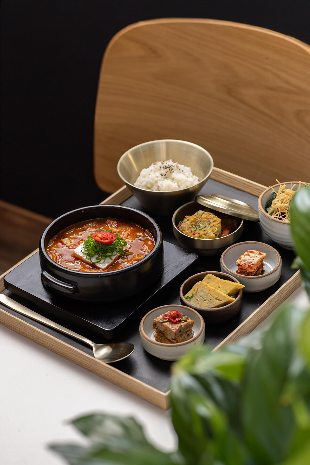 ディナーのメインはパンチャン(小皿料理)とセットで。写真は豆腐チゲセット(18ユーロ)。photo:The Travel Buds