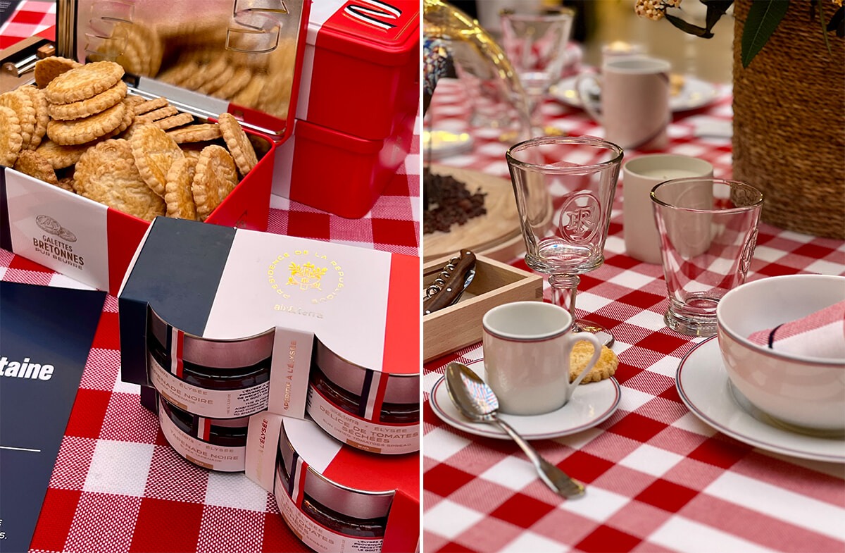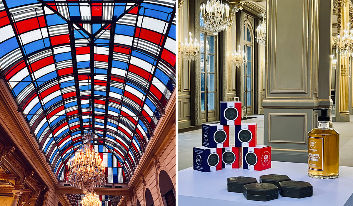 この秋にフランス・コレクションに加わった新たなメイド・イン・フランスの15ブランドとのコラボレーション品がエリゼ宮内で発表された。フランスならではのサヴォワールフェールを駆使しているブランドである。卓球のラケット、紐編みの買い物袋……商品やパッケージにはトリコロールがあしらわれているので、パリのお土産として最強の品々と言えそうだ。海外からの購入やギャラリーラファイエットで扱っていない品の購入はオンラインショップで!