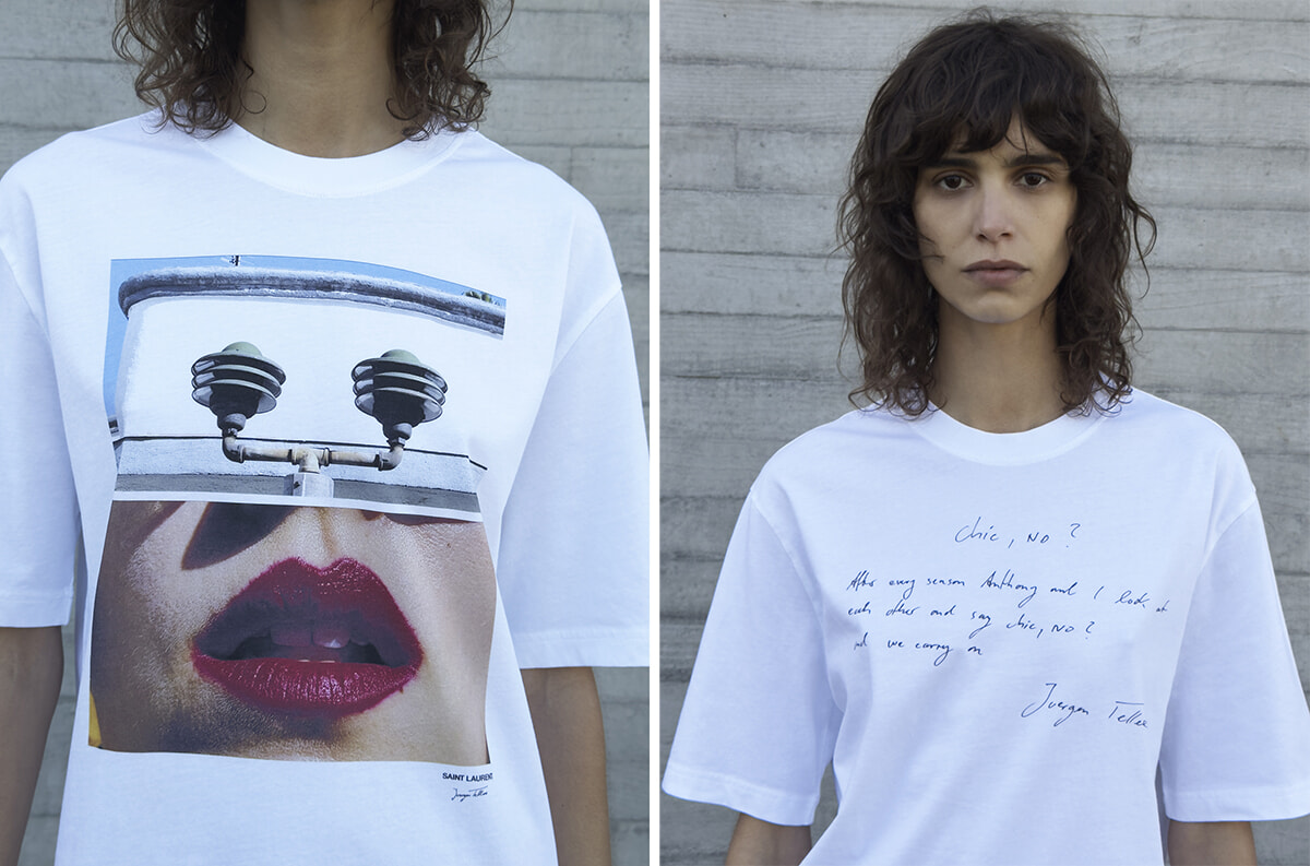 この展覧会の公式スポンサーを務めているのはサンローランで、クリエイティブ・ディレクターのアンソニー・ヴァカレロは「ユルゲン・テラーは、その知性、ユーモア、そして尊敬の念によって、自身の作品を内省的なゲームに仕立て上げるカメラマンです。その作品はメゾン イヴ・サンローランの創業神話へのオマージュであり、暗示でもあります。今回のサンローランとのコラボレーションでは、クリエイティブな原動力の原点を探求することを目的にしています」と語っている。このユルゲンと自分の関係は、イヴ・サンローランとヘルムート・ニュートンという伝説的デュオに遡ってみると理解しやすいだろうとも。