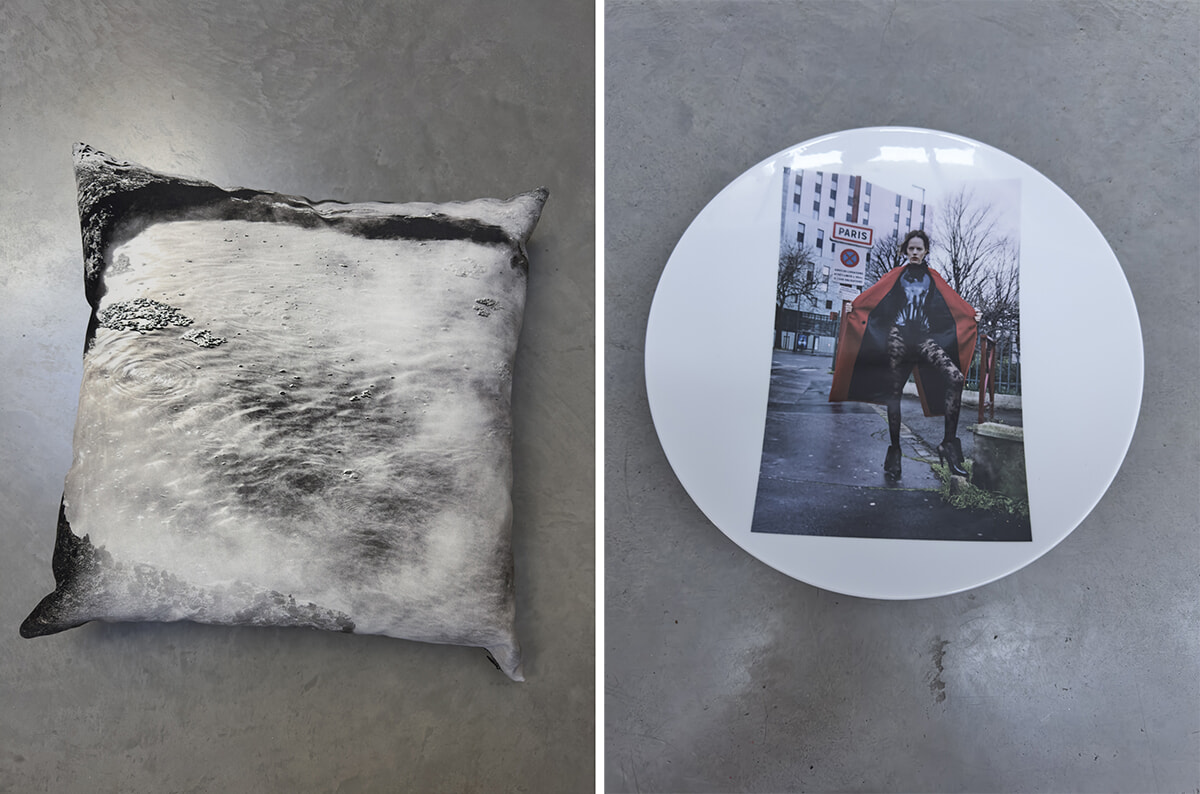 ホームウェアから、クッション(写真左/178,200円)とプレート。購入はhttps://www.ysl.com/ja-jpにて。