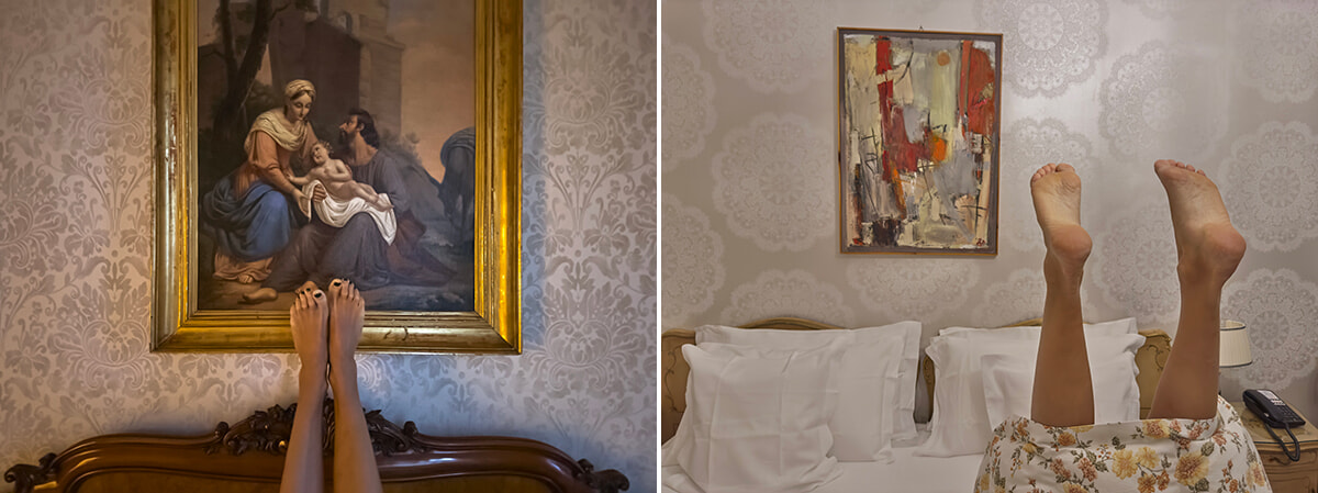 左は『The Myth No.50, Grand Hotel Villa Serbelloni, Bellagio, 2022』、右は『The Myth No.133, Grand Hotel Villa Serbelloni, Bellagio, 2022』。イタリアで家族経営のホテルの94室を使って撮影した”受精”をテーマにした個人プロジェクトより。ユルゲンによると彼におけるもっともロマンティックなプロジェクトだそうだ。
