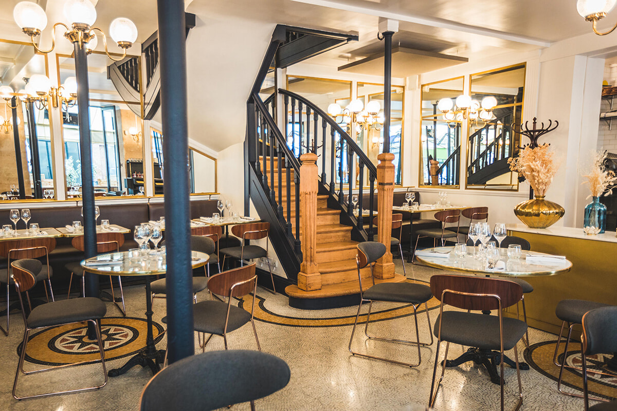 まるでフランス映画のワンシーンに飛び込んだみたい! そんな気にさせるのは2区のネオビストロ、「Le Minet Galant(ル・ミネ・ガラン)」だ。客たちのおしゃべりがわいわいがやがやと響き、テーブルとテーブルの合間を縫ってお皿を両手に抱えたボーイたちがサービスし……。ジェローム・ジュスランとアドリアン・ブリオという共同オーナーに代わってはや3年だが、この雰囲気は相変わらずだ。