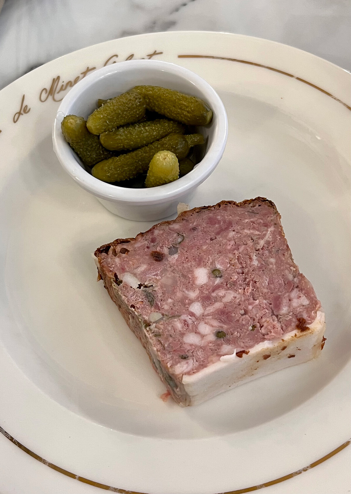 レストランは劇場のThéatre des Bouffes Parisiensの近くにあり、かつてはLe Petit Colbertという店名だったのをジェロームはル・ミネ・ガランに変更した。これはボードヴィル作家ジョルジュ・フェドーの1907年の作品『耳に蚤』に由来する。夫がホテル・ミネ・ガランで浮気をしている!と妻が思い込むという作品の中に出てくる架空のホテル名で、”la puces à l’oreille(耳に蚤)”というのは、何かを疑うという意味だ。ちなみに喉が詰まったり声がしゃがれた時には”chat dans lagorge(喉に猫)”、足がしびれた時は”fourmis dans les jambes(脚に蟻)”!