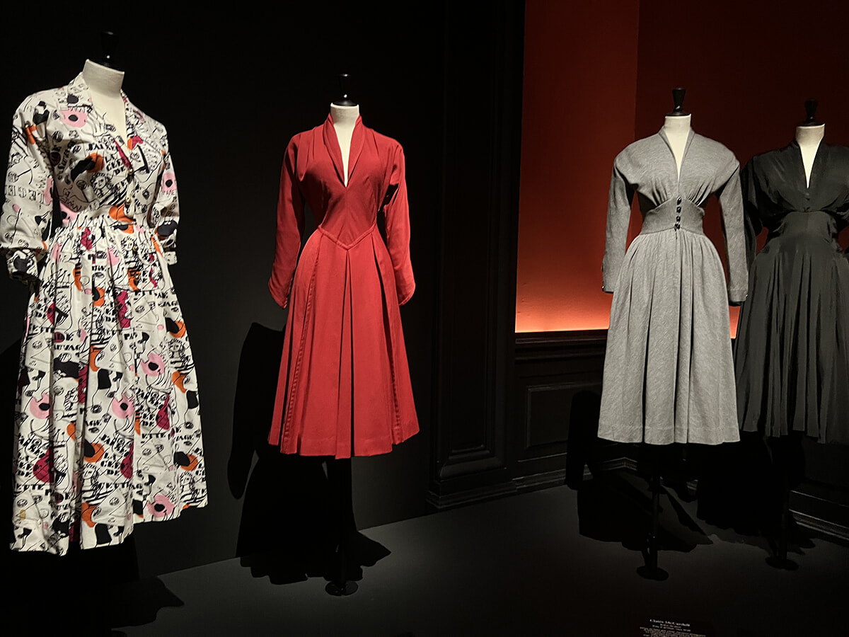 モダンスタイルの創始者と評されているアメリカ女性クリエイターのクレア・マッカーデル(1905〜1958年)。彼女はジョアン・ミロやフェルナン・レフェなどのデッサンをプリントに使用した。1940〜1958年のコレクションから。photo:Mariko Omura