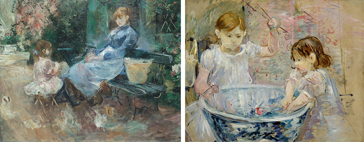 左: ベルト・モリゾ『La Fable』(1883年)。© ChrisPan Baraja SLB 右: ベルト・モリゾ『Les enfants à la vasque』(1886年)
