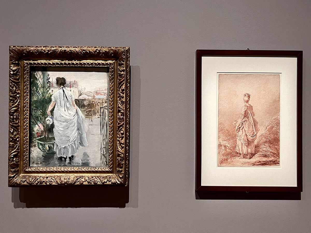 左はベルト・モリゾの『Jeune femme arrosant un arbuste』(1876年)、右はジャン・オノレ・フラゴナールの『Jeune femme debout, en pied, vue de dos』(1762〜1765年頃)。photo:Mariko Omura