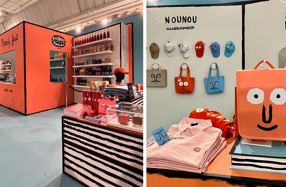 3階の第4章「ジャン・ジュリアン」は、ほかの会場に比べてブルーよりオレンジが印象的だ。彼のブランドNouNouのウエアや食器などの様々なアイテムを集め、そしてエピスリーもあればPhamily Firstとのコラボレーションによるカフェもあって……。