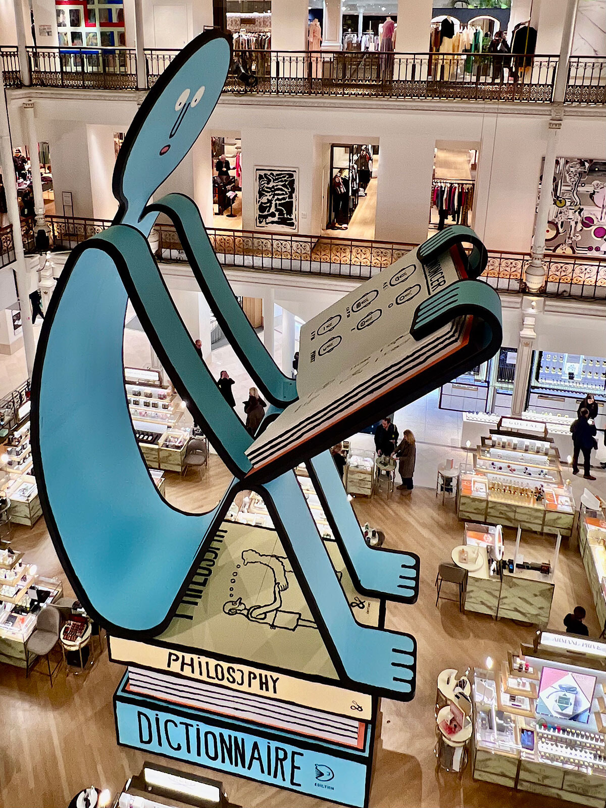 2月24日に『Mise en page par Sarah Andelman』展を開幕し、デパートのボン・マルシェは大勢を集めている。そのゲストキュレーターは伝説のコンセプトストア、コレットのディレクターだったサラ・アンデルマン。現在は自身が2021年に創設したJust An Ideaの編集者であり、またコラボレーション関連のアドバイザーとして活動している。彼女が手がけただけあって、”コレットに行けば時代の空気が吸える、何かに出合える、発見が待っている”というかつて彼女が作り上げた興奮がボン・マルシェの3フロアの会場に蘇った感がある。作家エミール・ゾラが『ボヌール・デ・ダム百貨店』(1883年)のモデルにしたのが、世界初のデパートであるボン・マルシェ。夢を与え、買い物欲を刺激する戦術を生み出すことに天才的に長けていた創始者アルフレッド・ブシコーに、なんとなくサラが重なってしまう。彼女とボン・マルシェが組み合わさったのだから、館内が賑わないわけがないのだ。
