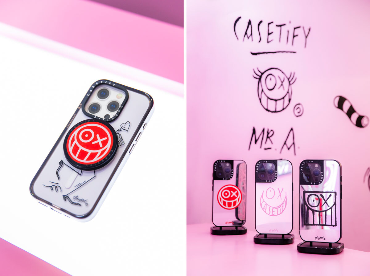 ケースティファイの新しいコラボレーションは、アンドレが生み出し、いまや彼の分身のようなキャラクターのMr.A がモチーフだ。この機会にブランド初の限定ブティックがMr.Aのカラーであるピンク色にまとめられてオープン。スマートフォンケース、iPadおよびMacBook用ケース、さらにMr.Aのスケートボードも50点限定で販売している。愛、アート、テクノロジーをセレブレートするこのコラボレーション。誰よりも早く入手できるのが、このポップアップストアだ。