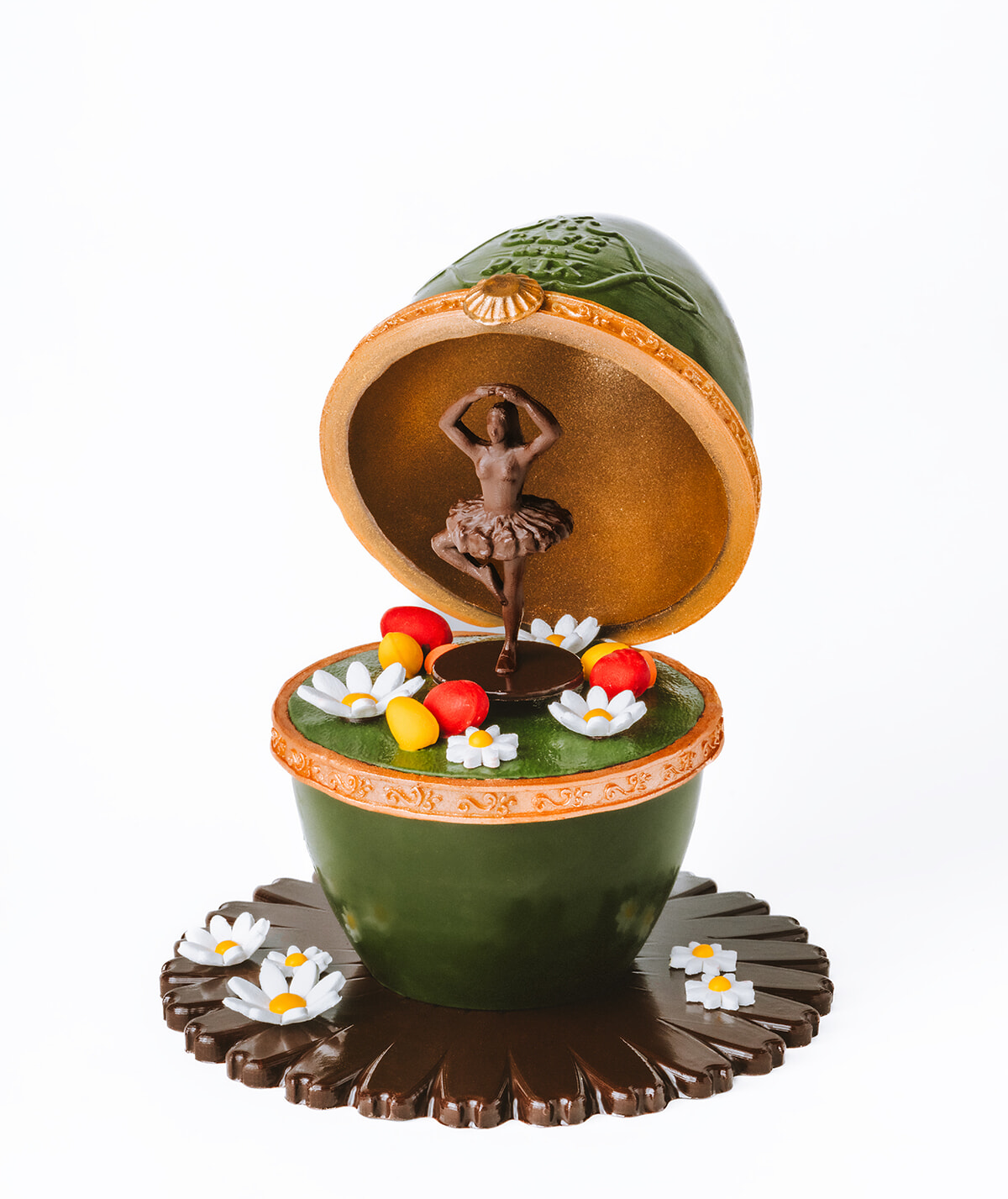 オペラ・ガルニエと広場を挟んでお向かいにあるカフェ・ドゥ・ラ・ぺはバレエをテーマに、エグゼクティブシェフのローラン・アンドレがパリ・オペラ座にオマージュを捧げた。蓋を開けるとチャイコフスキーなどバレエ作品でおなじみのメロディーに合わせてバレリーナがくるくる回るオルゴール、そんなイメージのイースターエッグ・チョコレート。その名は「Le Fa de l’Opéra(ル・ファ・ドゥ・ロペラ)」だ。もちろん中には小さなエッグチョコレートなどが詰められている。