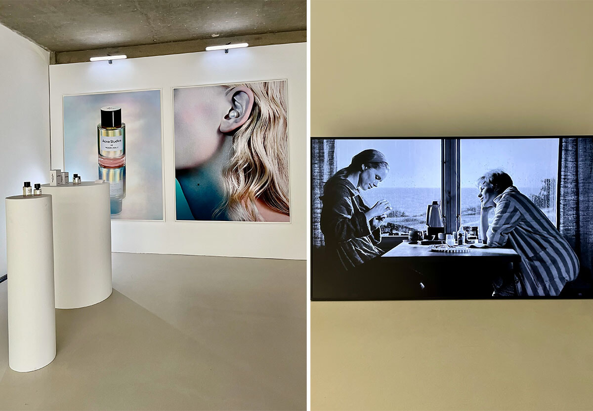 3月初旬のパリ、白いパッケージングとピンクの底のボトルの香水がお披露目された。会場ではキャンペーンビジュアルが壁を飾り、イングマール・ベルイマンの映画『仮面/ ペルソナ』(1966年)の一部が流された。photos: Mariko Omura