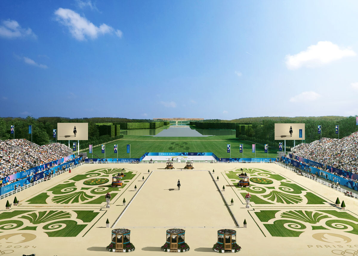 ヴェルサイユ宮殿の庭園のど真ん中に設置される特設馬場で行われるのは、馬場、総合、障害の3種の馬術と近代五種競技。フランスを代表する宮殿と庭園を背景に繰り広げられる馬術は、パリらしいエレガンスを約束する。