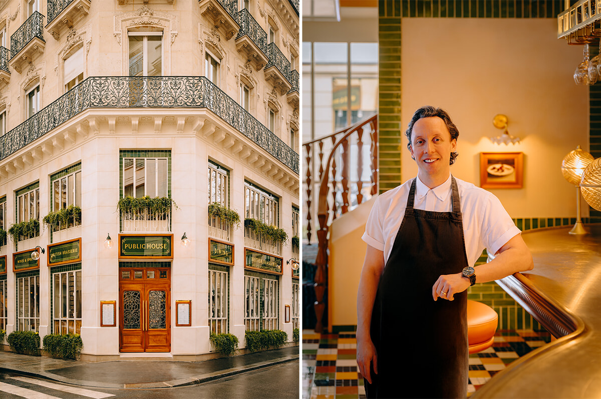 ガラスとタイルそして英国的グリーン。オペラ座地区になんとも心惹かれる外観のPublic House(パブリック・ハウス)がオープンした。ここは”パリの英国パブ&ブラッスリー”と謳っていて、英国料理が味わえる3フロアからなるレストランだ。シェフは”パイの王様”と呼ばれるカラム・フランクリン。フランス料理にもおおいなる関心を抱いているシェフだと聞けば、特製のパイやタルトを早速試してみたくなる。シェフはパリっ子たちの反応が楽しみなのだという。