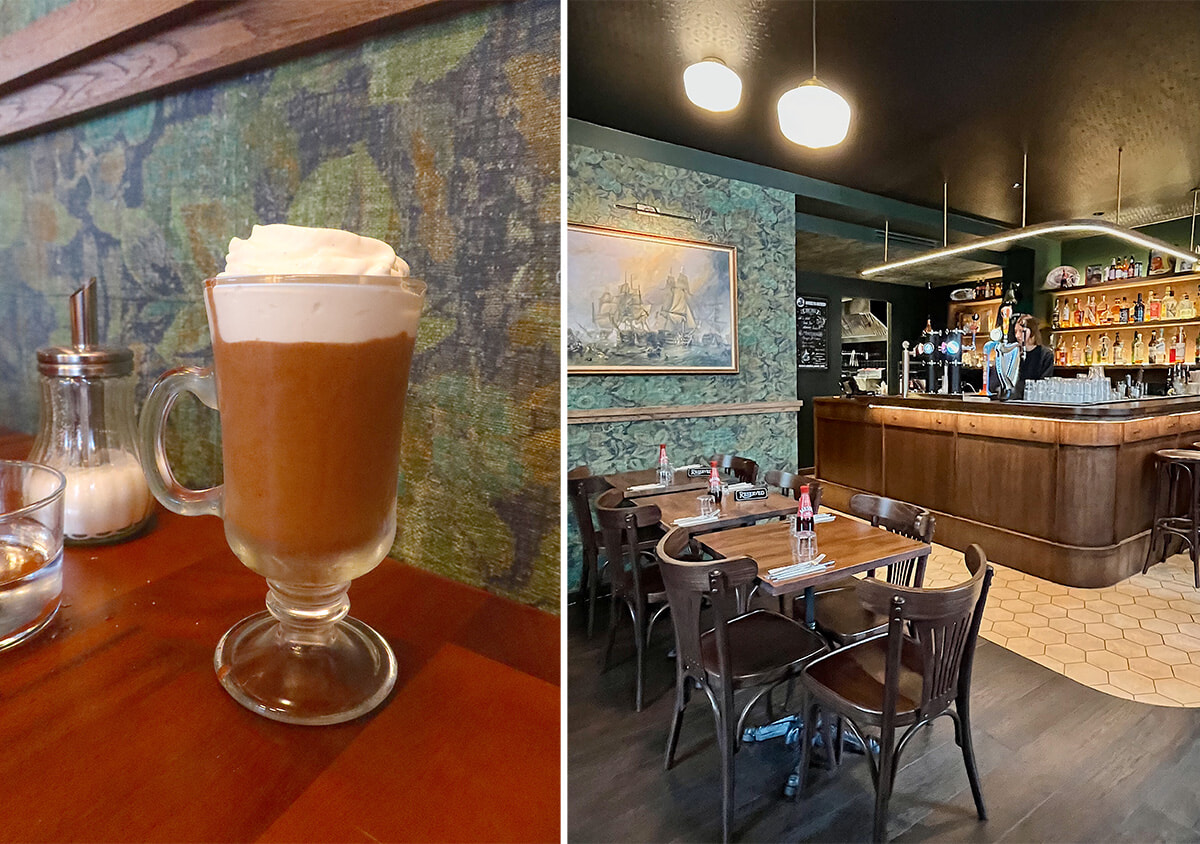 左: チョコレート&ギネス・ムース(7.5ユーロ)右: カジュアルな雰囲気の店内。photos: Mariko Omura