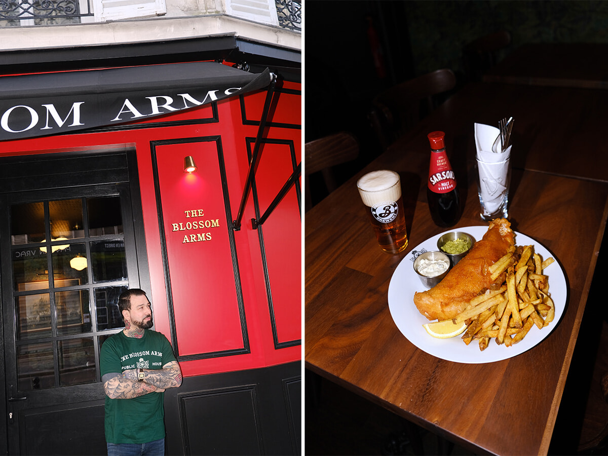 ブロッサム・バーガーを10区で流行らせたフランス人シェフ、アレクサンドル・シャピエがパブThe Blossom Arms(ザ・ブロッサム・アームス)を17区にオープンした。外観は黒と赤、店内にはテレビ!というのがいかにもパブらしい雰囲気。ギネスビールを飲みながらサッカー観戦しようと客が集まると、店内にはエネルギーが満ちあふれる。ロンドンではゴードン・ラムゼイのところで働いた経験を持つシェフはフィッシュ&チップスの専門店を開こうと最初に考えていたのだが、そのアイデアが発展して英国的モダンシーフードパブとなったという。フィッシュバーガー、ツナメルト、グリルドチーズトーストなど、ロンドン気分で気軽に食事ができるメニュー内容だ。もちろんビールもパリのカフェとは異なるセレクション。 ギネス、Brooklyn IPA, Tripel Berthaといった生ビールを揃えている。パリ滞在中、ちょっと気分転換をしたい時に!